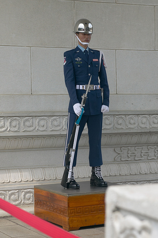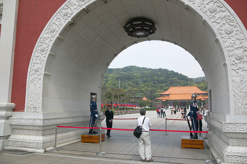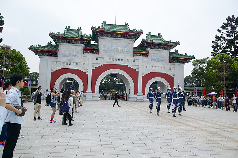 次に訪れたのが「国民革命忠烈祠」。33万人の英霊が祭られる忠烈祠では陸・海・空軍から選び抜かれた衛兵による衛兵交代を見学できた。1時間交代で大門と大殿を各2人ずつで守っている衛兵が背筋を伸ばし足を同じ高さに上げ、脇目もふらず行進する。大門から大殿までを往復するセレモニーの所要時間は約20分間だ。