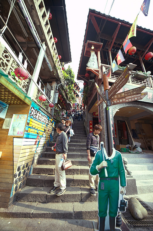 台北の桃園機場から向かったのは九フン(にんべんに分)。台湾東北部の丘陵地で海に面した九フンで、清の時代1890年に金脈が掘り当てられ、9世帯しかなかった貧しい村が四千世帯の都市へと変貌した。廃鉱と共に廃れたここをロケ地にした映画がベネチア国際映画祭で、グランプリを受賞するなど、忘れられていた小さな村が再度注目を浴びるようになった。