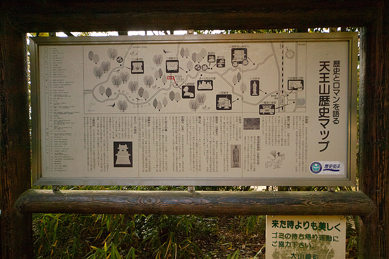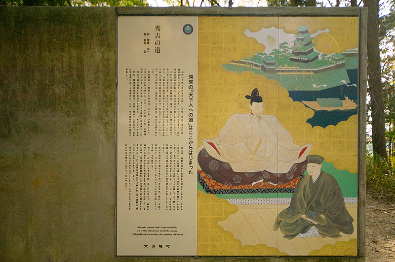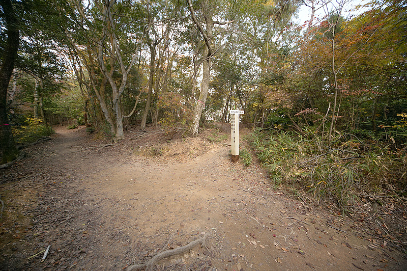 低山だと、なめていたのは間違いだった。きつかった登りも一段落、尾根道からは平坦な下り傾向の道だ。頂上は山崎城跡地でもある。大山崎町のページから「秀吉の道パンフPDF(2.5 MB)」を見ることが出来る。