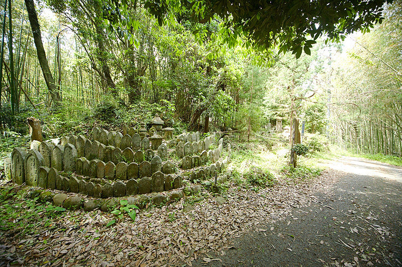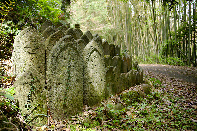 竹林の小路沿いに石仏群