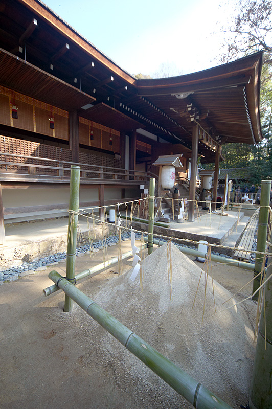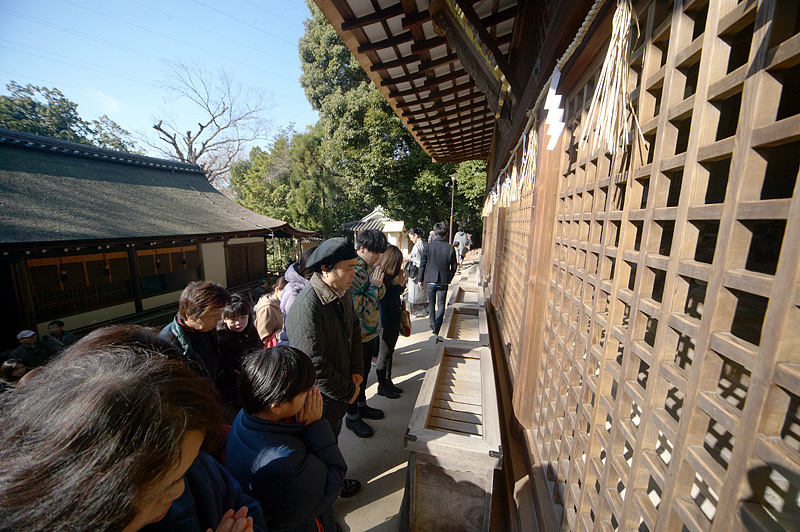 世界遺産の宇治上神社に初詣。菟道稚郎子(うじのわきいらつこ)、応神天皇、仁徳天皇を祀る。本殿は日本最古の神社建築だ。近年行われた建材の「年輪年代測定法」によって、本殿が平等院とほぼ同時期の1060(康平3)年頃に、拝殿は1215(建保3)年頃に建立されたことがわかった。