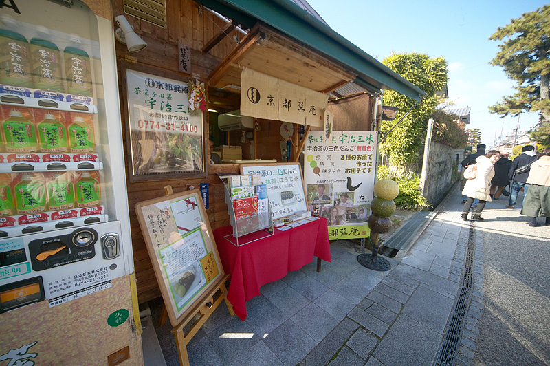2017年1月1日、3月並の暖かさで新年を迎えることが出来た。家族5人で初詣に出かけるも、立木観音を目指すことを諦め、地元に照準を合わせた。 旧宇治橋の名残から 右岸の通園前(京阪宇治駅前) 右岸の遊歩道で3色茶団子を発見 1本140円の覚悟が必要 左岸の平等院参道 抹茶ビールは初めて見た 平等院は垣間見るだけ ↑もどる 次へ→