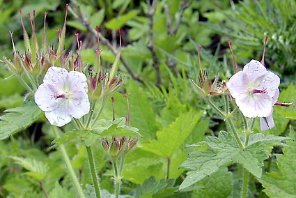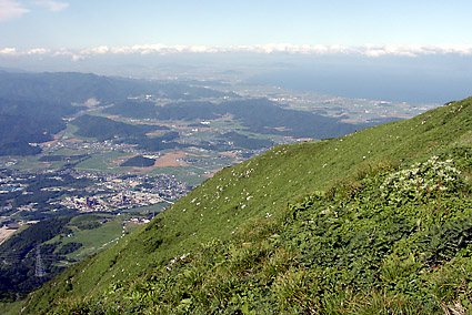 6月の伊吹山-2/6 6合目を過ぎる頃から傾斜もきつくなり、視界に占める空の割合が増えていく。南斜面は風もなく穏やかであったが、頂上付近では北から吹き付ける風が次々と雲を送りだしてくる。9合目からは頂上への稜線を確認することが出来た。 クサタチバナ クサタチバナとヒメレンゲ 頂上から3合目の鉄塔と琵琶湖を見下ろす グンナイフウロが朝露にぬれていた 遊歩道のグンナイフウロ ←前へ もどる↑ 次へ→