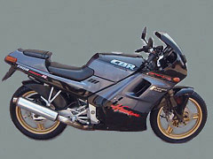 当時は珍しかったスーパーマルチクォーター水冷のDOHC4気筒フルカウル155kg。カムギアトレーンで超高回転18000回転からのレッドゾーン、45馬力/15,000回転。「FZ250フェーザー」に対抗するべく1986年にCBR250FOUR発表。フルカバード・フェアリングや、前後分離タイプのシートを採用のほか、従来のアルミフレームに加え、リヤフォークやステップも軽量化。リヤブレーキもディスクとなったCBR250Rは87年モデル。