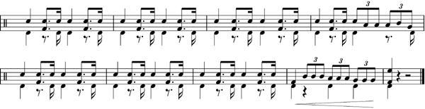 ●逆ダブルパラディドル(LRLRLLRLRLRR)