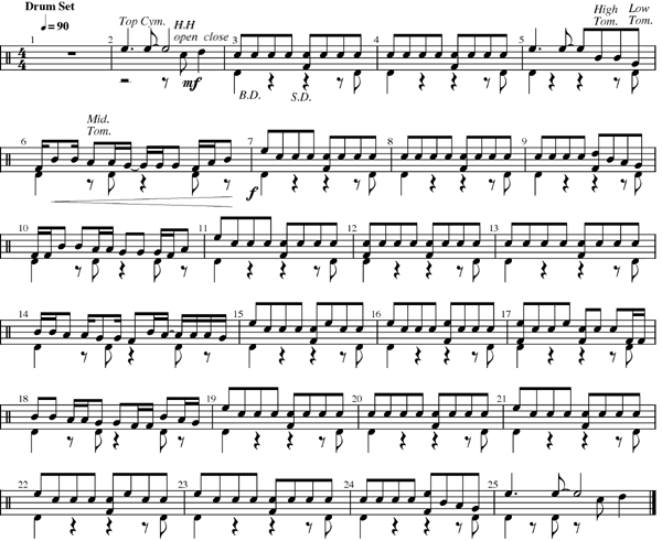 「フィルインと譜面に書かれてあるんです、どうしましょう?」と困った顔で私のところに来る生徒が時折います。「自由にやっていいよ」と答えると益々困り果てる場合もしばしばです。フィルイン(フィル)とは曲の間や変わり目など(4小節・8小節おき)に通常のリズムとは異なるアクセントをに入れる短いフレーズ(1小節程度)のことです。曲を盛り上げる役割などにも使います。フィルインの話をする前に触れなければならない基本的な奏法について先に書きます。