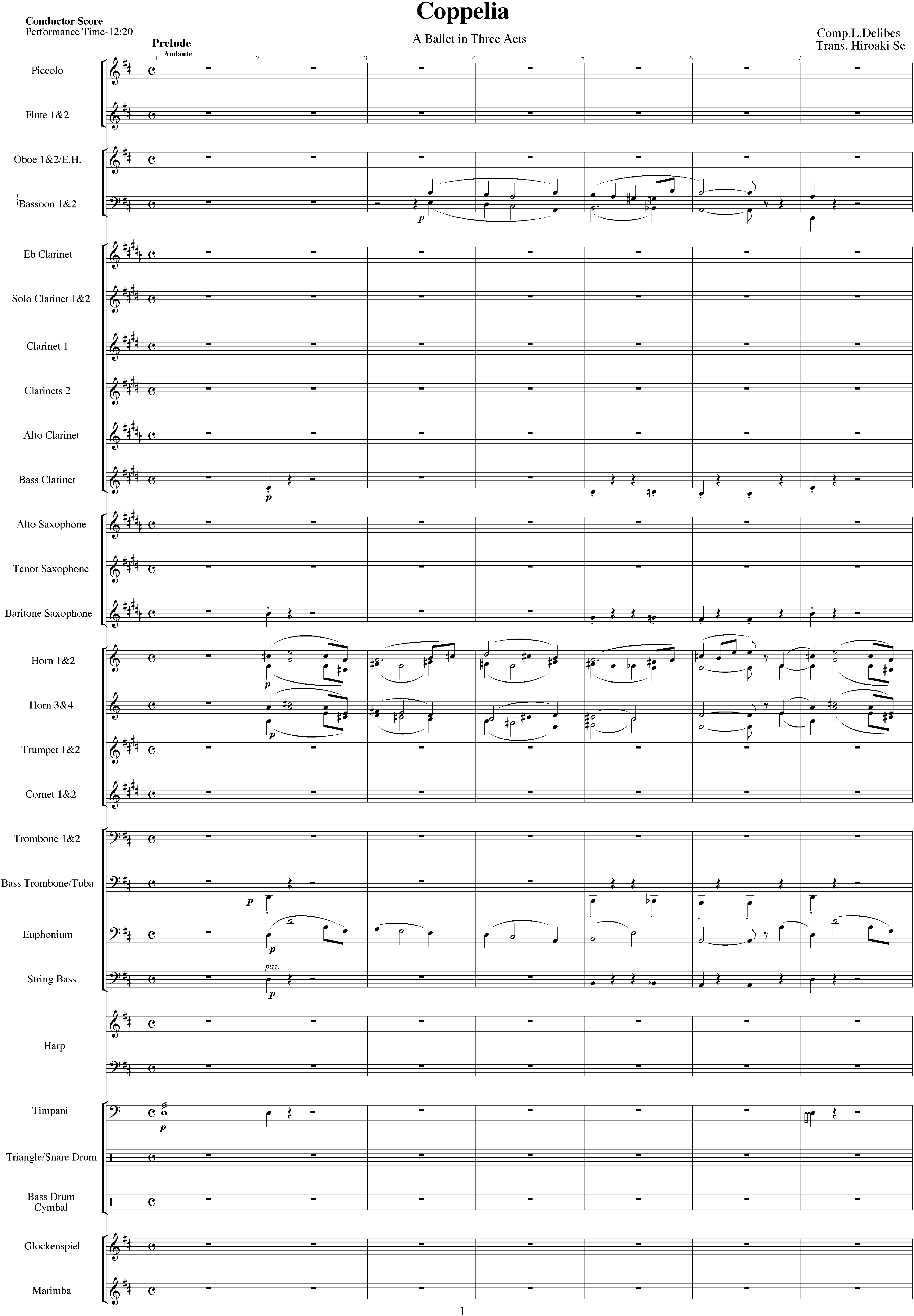 バレエ音楽「コッペリア」第一組曲(ドリーブ/編曲 瀬 浩明) 非圧縮.mid324k スコア260k
