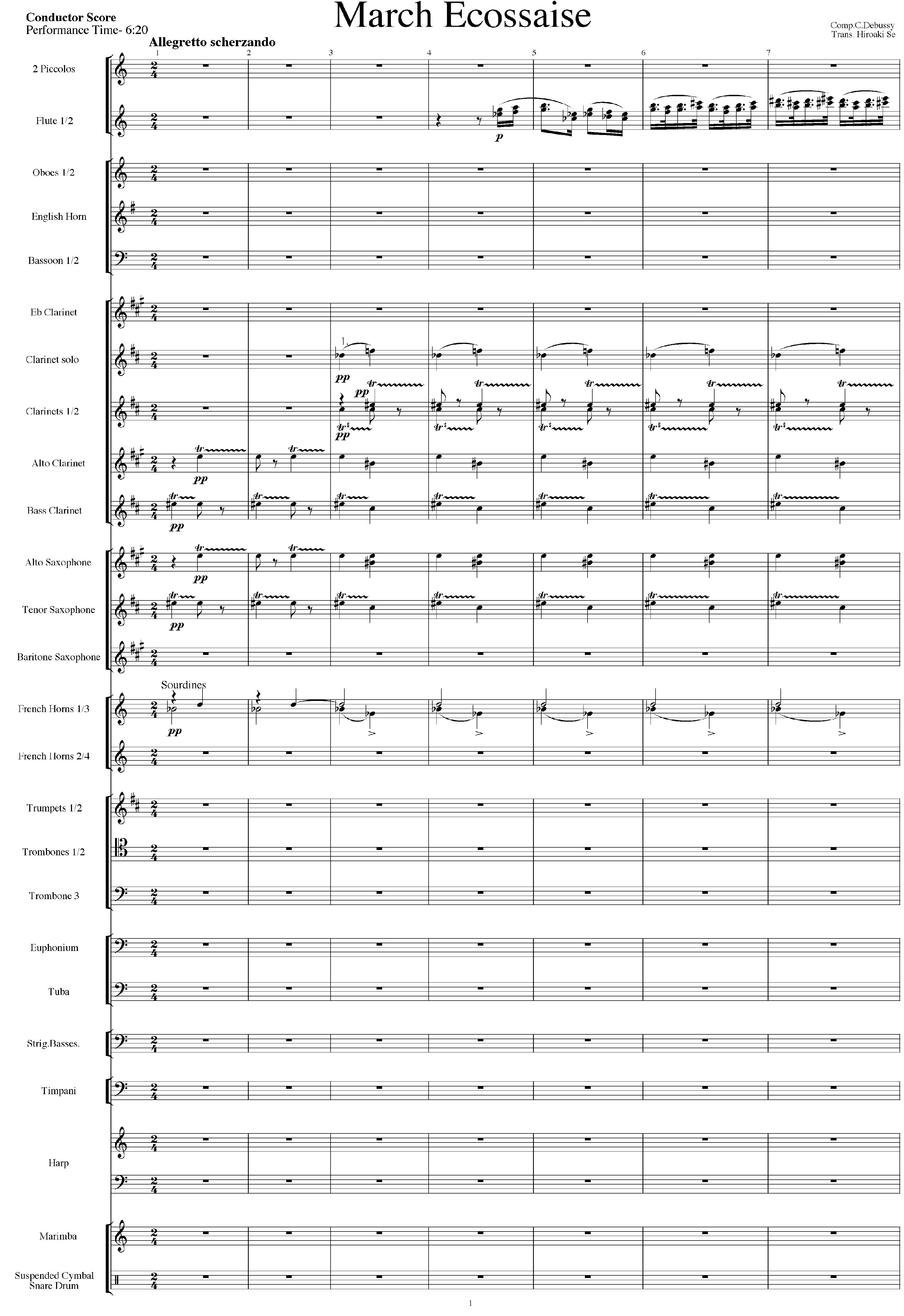 民謡を主題とした「スコットランド風行進曲」(C.ドビュッシー/編曲 瀬 浩明) 非圧縮.mid118k スコア187k