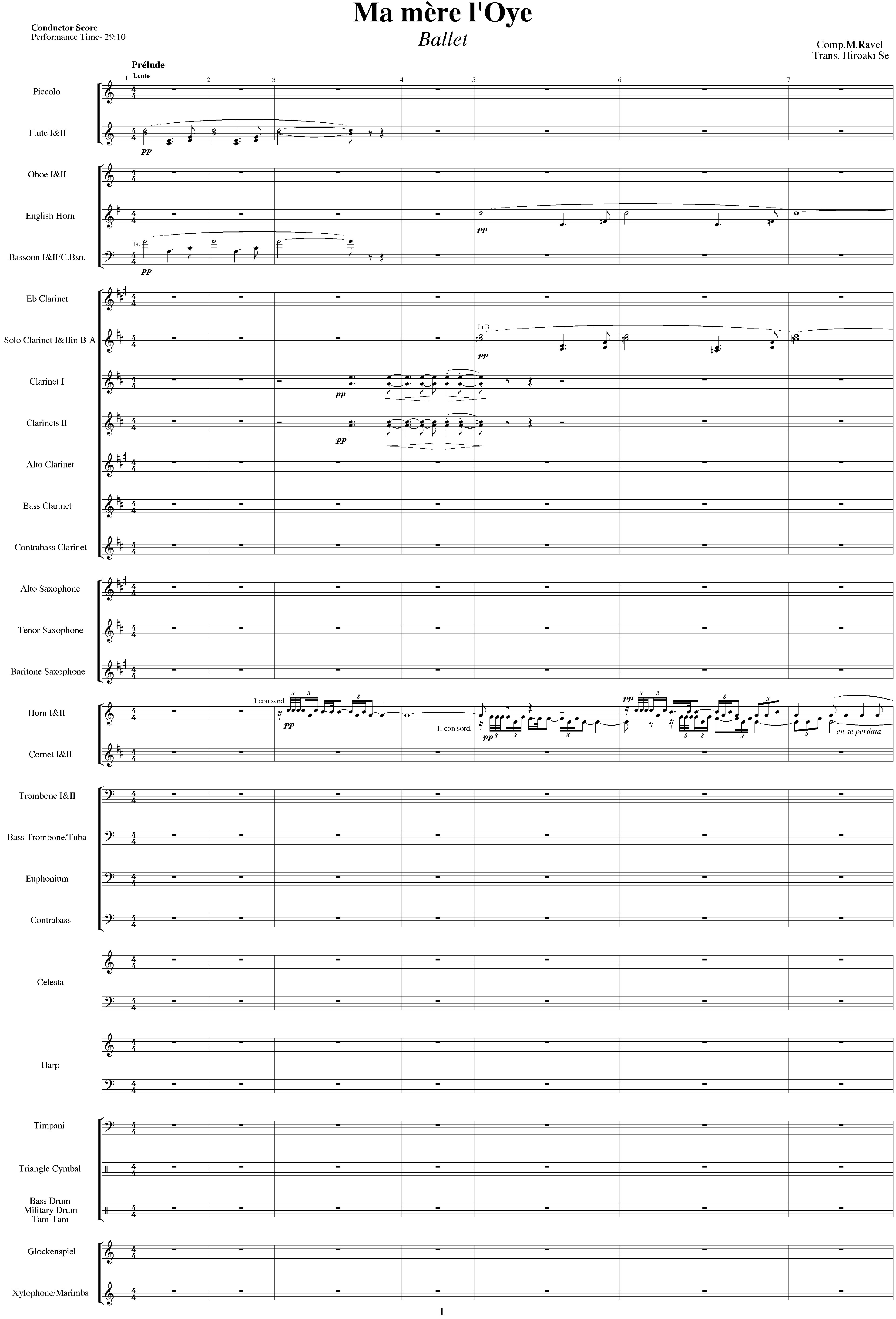 バレエ音楽「マ・メール・ロア」(M.ラヴェル/編曲 瀬 浩明) 非圧縮.mid191k スコア187k