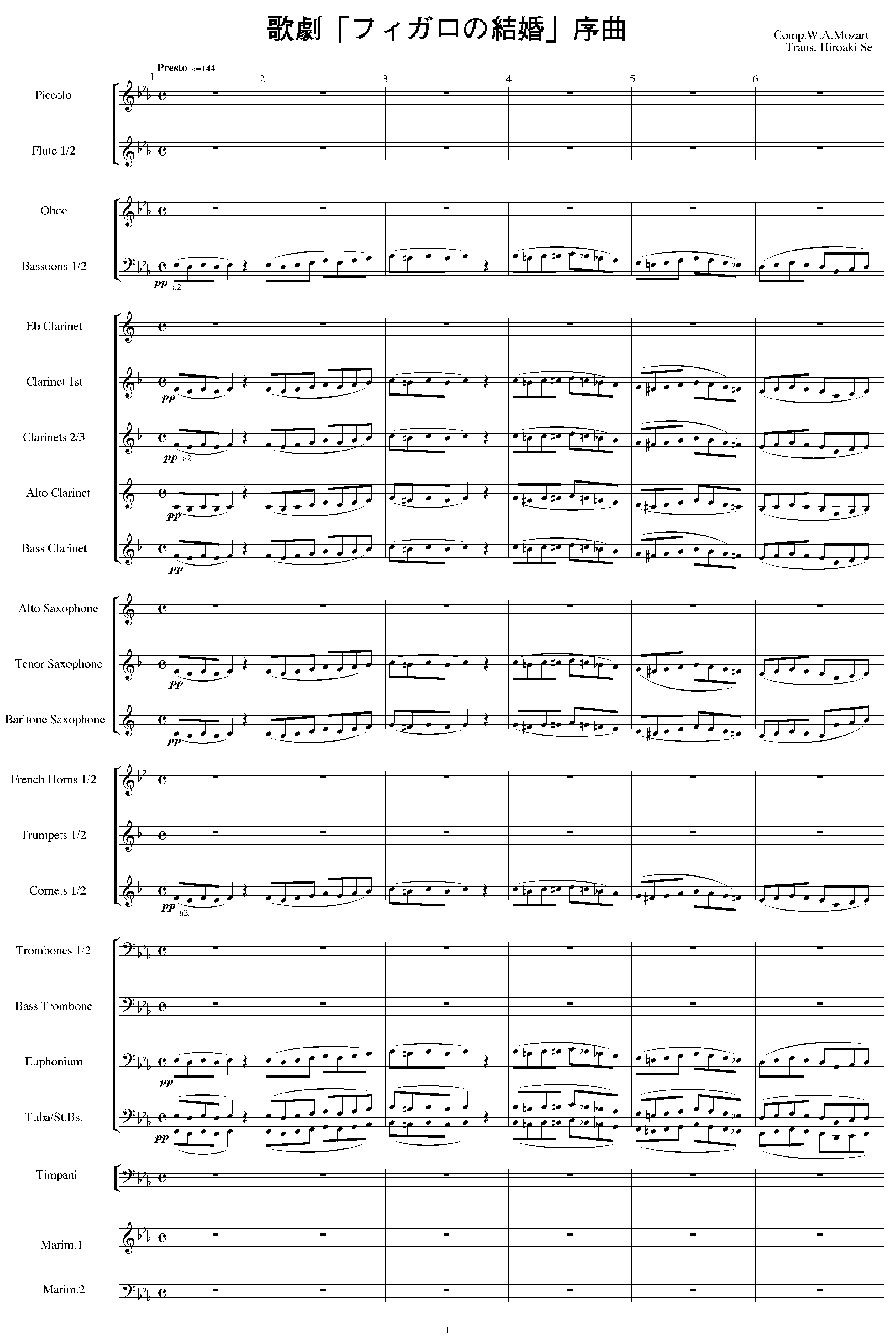歌劇「フィガロの結婚」序曲(W.A..モーツァルト/編曲 瀬 浩明) 非圧縮.mid189k スコア165k
