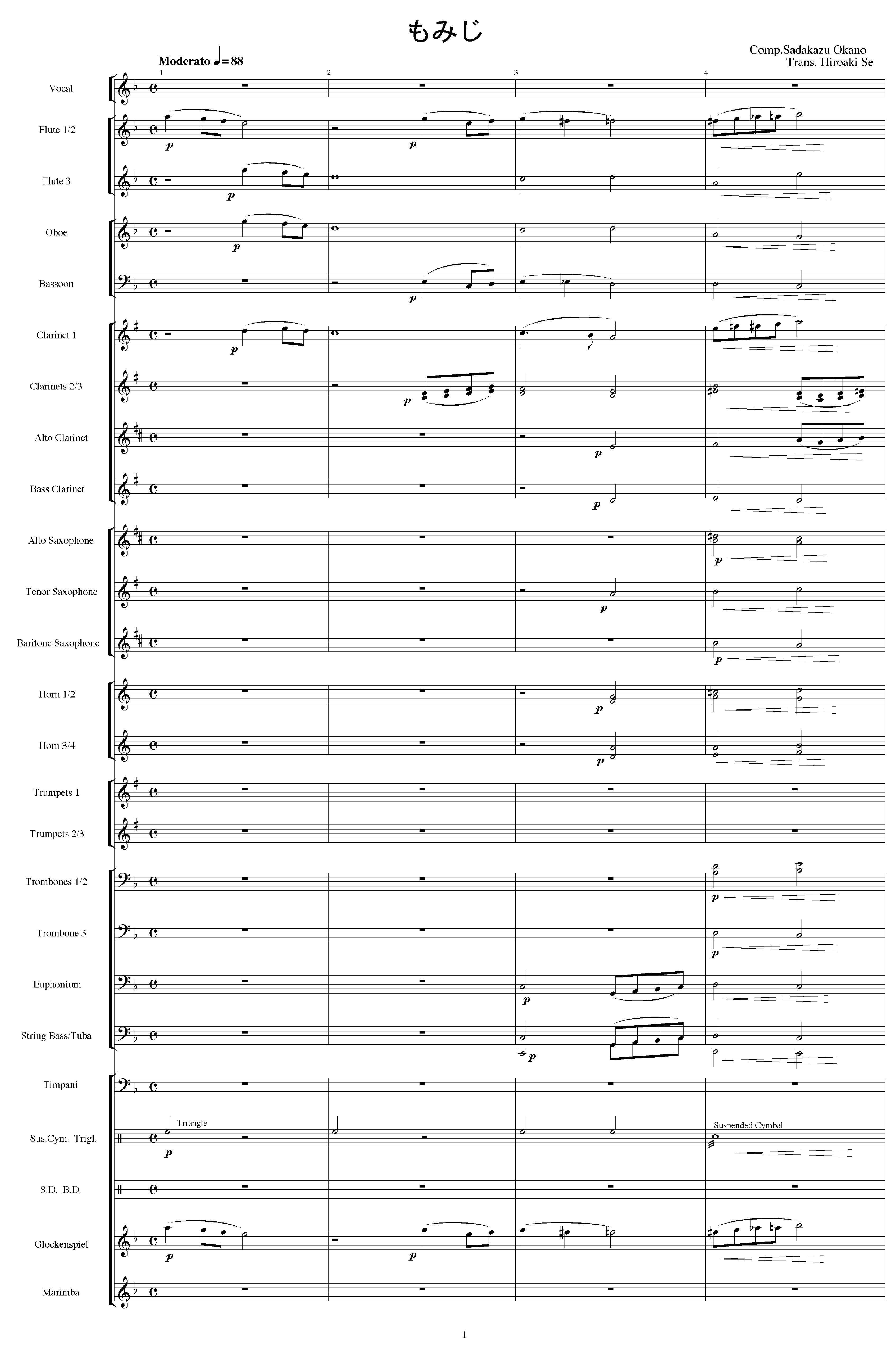 もみじ(岡野貞一/編曲 瀬 浩明) 非圧縮.mid68k スコア154k
