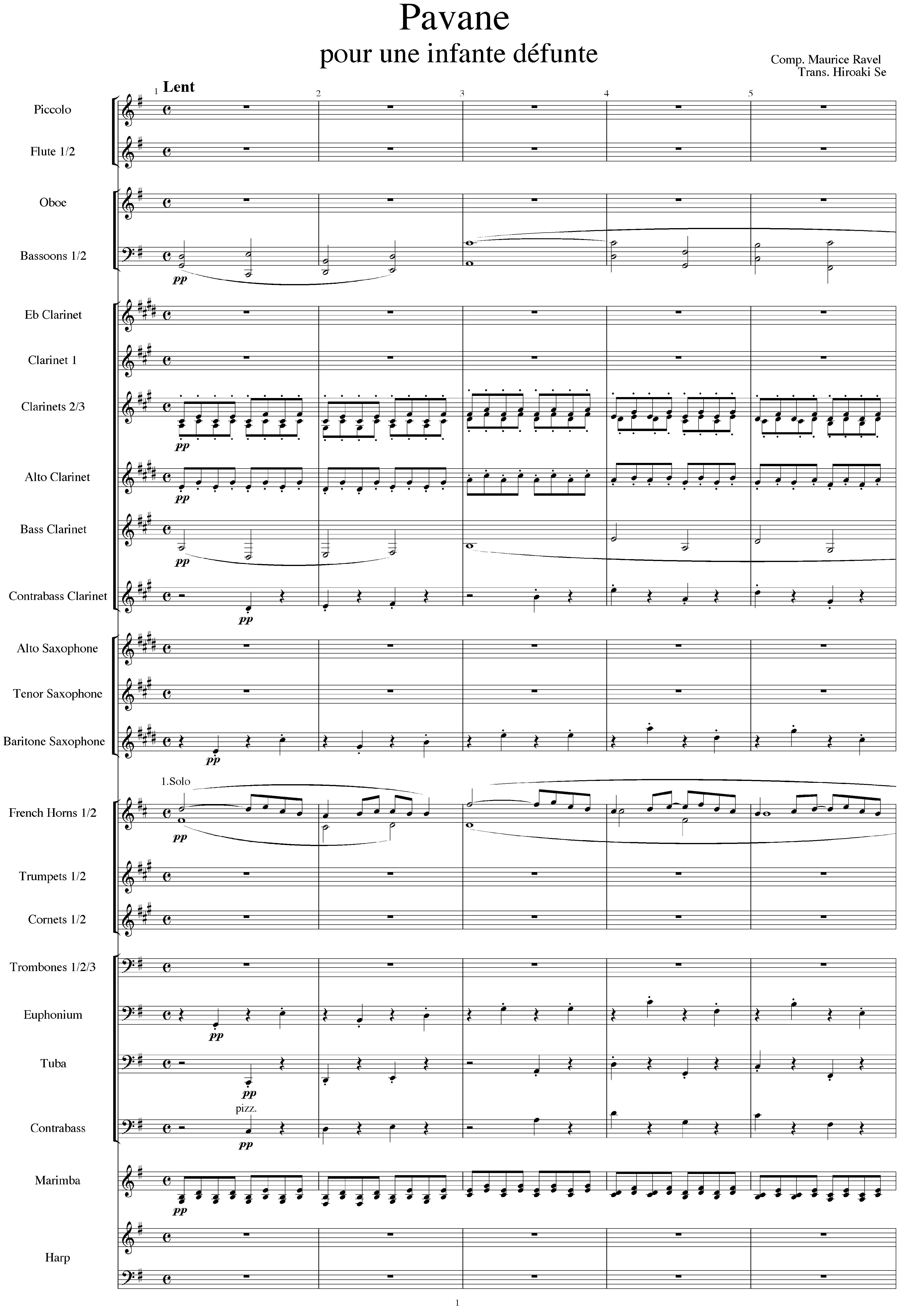 亡き王女のためのパヴァーヌ(M.ラヴェル/編曲 瀬 浩明) 非圧縮.mid42k スコア209k