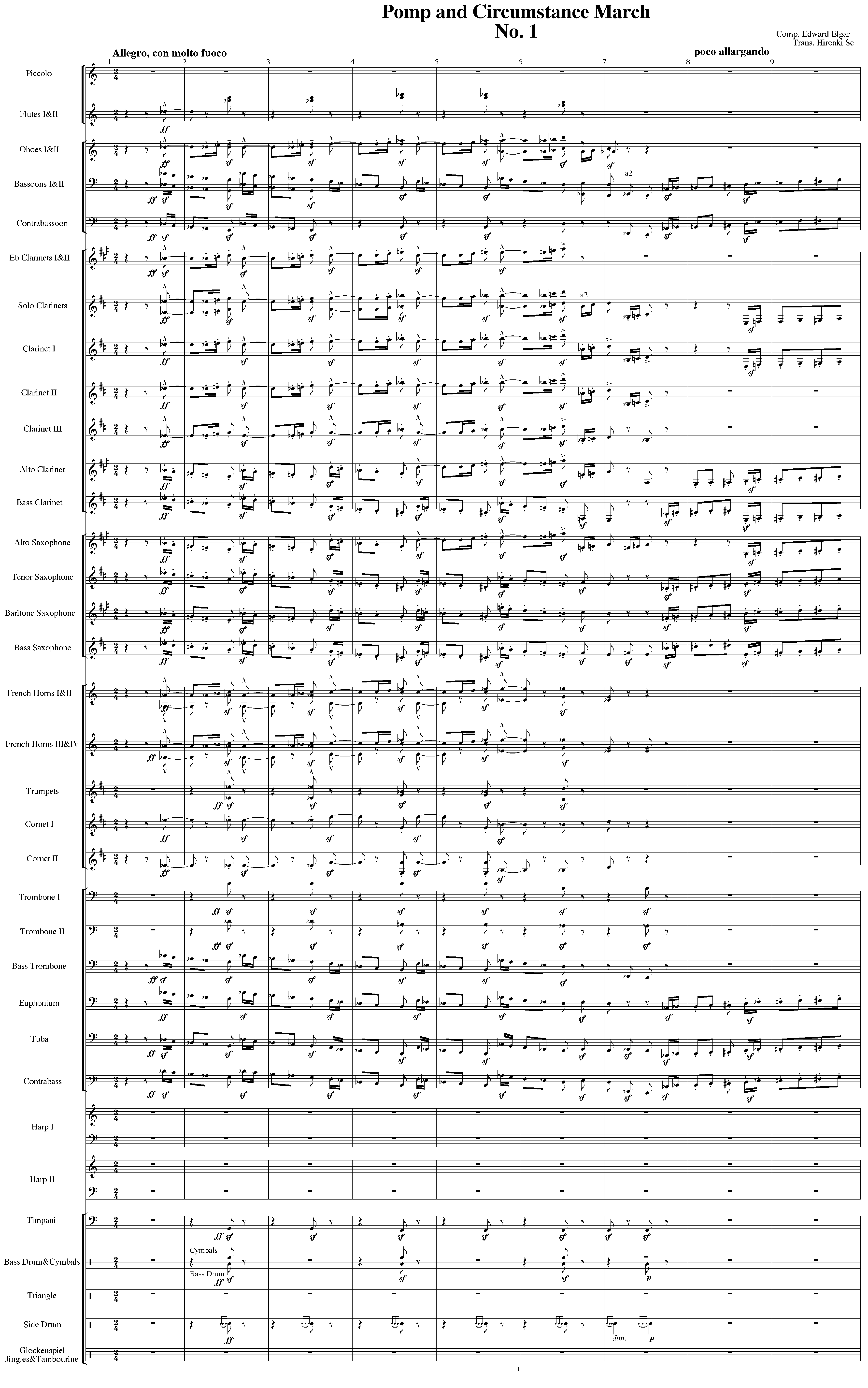 グレード4/5 既存の軍楽隊風アレンジ(コンデンススコア)ではなく、シンフォニックで原曲に忠実なNew transcriptionです。原調より長2度下、ハ長調。 非圧縮.mid196k スコア319k 15000円