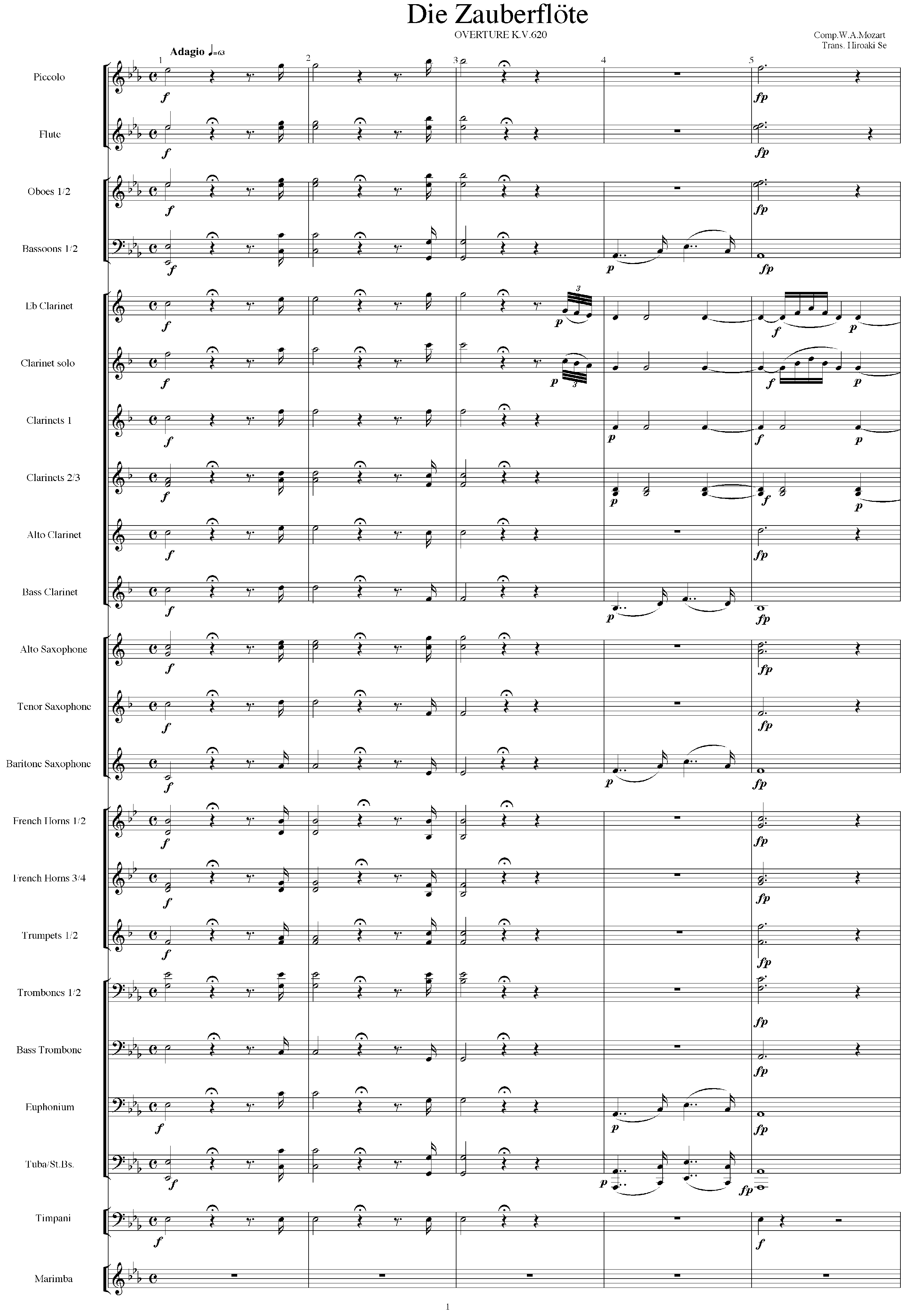 歌劇「魔笛」序曲(W.A..モーツァルト/編曲 瀬 浩明) 非圧縮.mid113k スコア154k