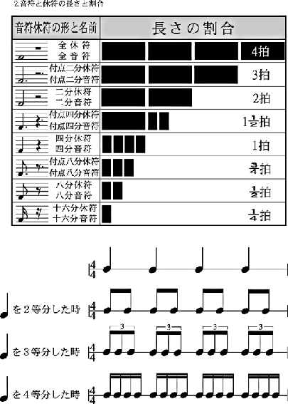 ●音符の長さ表(1年生)