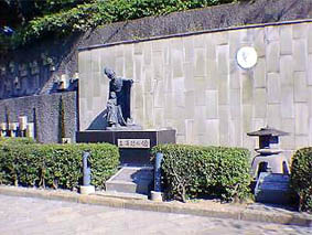 歴史の泉にある三浦環像。戦後は、歌劇マダム・バタフライの記念碑を園内に建立する計画をめぐり、モデルがグラバー夫人ツルかどうかなどで話題になる。このオペラは、米国の弁護士ジョン・ルーサー・ロングが小説に書いたのを、イタリアのペラスコが劇に脚色、さらにプッチーニが歌劇として発表した作品だ。郷土史家らの論争が新聞などで展開されたため、グラバー園は蝶々夫人ゆかりの地のようになってしまった。ヒロイン蝶々夫人を何度も演じ、この悲恋物語を世界的に有名にしたオペラ歌手、三浦環の記念像が建てられている。港の見える丘で帰らぬ人を待っていた蝶々夫人。その指し示す指先には、愛するピンカートンへの一途なまでの思いが見て取れる。 この異国情緒溢れる長崎ならではのストーリーは我々日本人にも受け入れられる気質を感じさせてくれる。