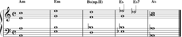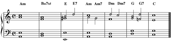 1. Am-Bm7b5-E-E7-Am-Am7-Dm-Dm7-Eb-G-G7-C