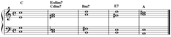 5. C-Ebdim7(Cdim7)-Bm7-E7-A