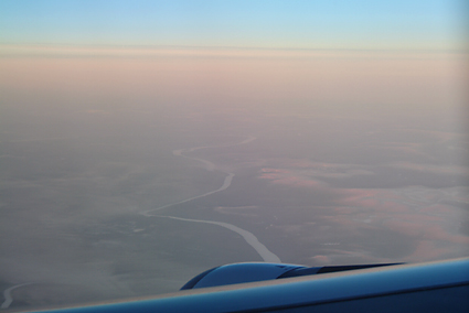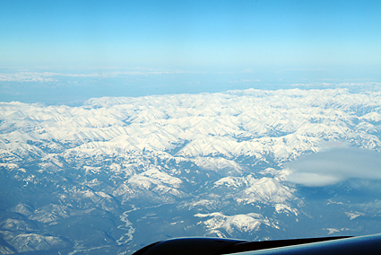 早朝5時20分に自宅を出る。近頃は「スカイゲートシャトル」という自宅から空港まで送迎してくれる乗合タクシーがある。今思えば帰りこそ予約をしておけば良かったと後悔するのだが、重いトランクを引きずる距離は短い方が楽に決まっている。航空機の座席は全てエコノミークラスで予約してあったが、伊丹-成田だけはビジネスクラスであった。どうせなら12時間の路線(成田-ウィーン)でこんなサービスがあれば嬉しいのだが。ウィーンの寒さは容易に想像ができ数時間後に味わうのだがシベリアの大地は筆者の想像を絶するものだろう。そんなことを考えながら機内で窓を眺めていた。日々の仕事や携帯電話での連絡から開放され、自分の意志のみで1日の予定が決められるなんて、最高の贅沢と言うべきだろう。