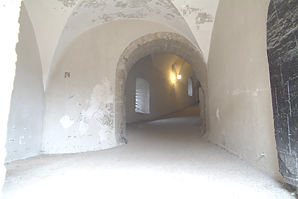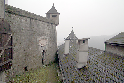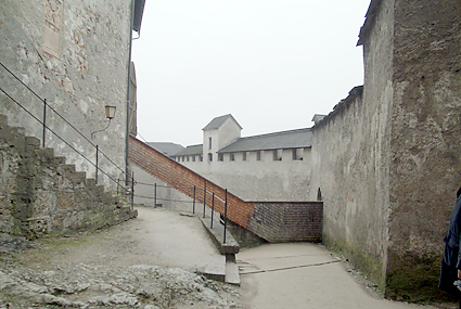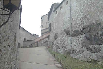 東側の出口を降りていくと、城壁に寄り添うように建つ建物を縫って階段が伸びている。何だ、歩いて登れたんだと、後悔をしたわけではない。登るのは相当キツそうだ。幾重にも重ねられた壁を何度もくぐりながら少しずつ下ってゆく。さすがに城郭だけあって複雑な造りである。自分がどの方向に向いて歩いているのか分からなくなる。何しろ周囲は壁だらけで空しか見えないエリアなのだ。そうこうして進んでくると出口の受付嬢がBitte schon. Auf Wiedersehen!と声をかけてくれた。これでホーエンザルツブルク城とも分かれて、次なる目的地のモーツァルト生家に向かうことにした。