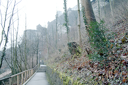 ホーエンザルツブルク城とも分かれ、 少しずつ旧市街に降りてきた。 四季を通じて自然と仲よくできる遊歩道が続く。 シュティーグルケラー(レストラン)の看板。 遠くにモーツァルト小橋が見えてきた。 これは渡らずにいられようか、ザルツァッハ川対岸から城を見上げる。 河畔のベンチで一休み、時間が止ったような気がした。 一人でモーツァルトの生家に向かった。扉は開けられていたのだ、一安心。 ひたすら階段を昇る。 台所は当時のままだ。 数多くの資料が展示され、 一家の肖像画や自筆譜を見ることが出来た。 ゆっくりする暇もなく10時に待ち合わせ場所のレジデンツ広場を目指し、 生家を後にしたのだった。