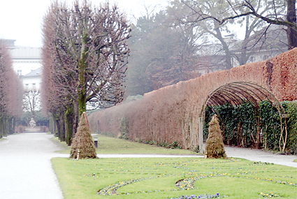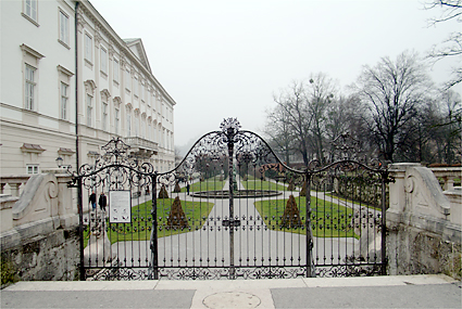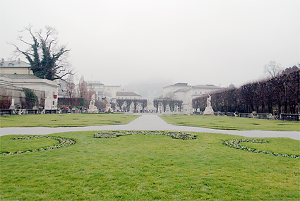アニフからのバスで直接乗り付けたミラベル宮殿前。ザンクトアンドレー教会がそびえ、中央駅も目の前である。ミラベル庭園といえばサウンドオブミュージックで見た場所である。ドレミの歌にのせて美しい庭園が広がってきた。庭園の正面には霧にけむる大聖堂とホーエンザルツブルク城が見える。ミラベルとは「美しい眺め」の意味。この宮殿は大司教が愛人のために建てたもので、今は市長公邸である。10分そこそこの滞在で中央駅に向かう。あと一つくらいは回れたかもしれないが、今夕のため安全策を取る。