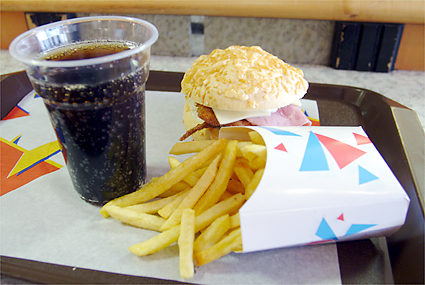 中央駅から列車に乗る前に軽く腹拵えをした。EUROなにがし....というファーストフード店だが店内はアメリカ資本とは少し違っていた。セルフサービスでカウンター越しに店員に注文する。やや愛想が悪い応対でスペシャルなにがし....というセットを注文する。薄いカレー味の黄色いポテトとシュニッッエルのようなポークの揚げ物・ハム・チーズ・キャベツの千切り・ホワイトソース、それらが焼いていないチーズブレッドに挟まれている。この昼食に何の感動も期待してはいけない。そして午後1時台の急行に乗車することができた。言い遅れたが、今回訪れた国々では市電やバスも在来鉄道でも切符なしでプラットホームまで行き、乗車することができる。我々は不慣れな異邦人、早めの切符購入を済ますに越したことはない。明るい時間帯なので車窓から見える列車を撮影すると決め込む。