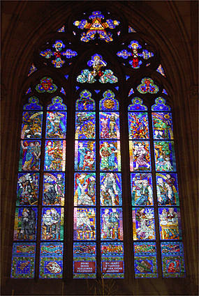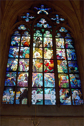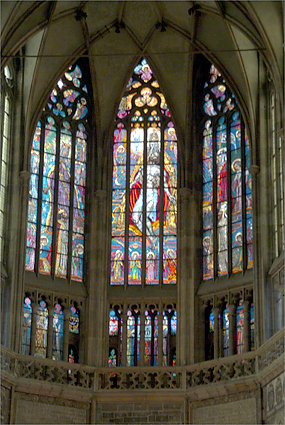 大聖堂の中に入ると更に厳かな雰囲気に満ちていて、両脇に並んだステンドグラスは見るものを立ち止らせる。筆者もシャッターを切り続けたが殆どが失敗に終わった。最も残念なのは正面中央の円形ステンドグラスの撮影が成功しなかったこと。マニュアルフォーカスで三脚を用いるべきだった。この大聖堂が建てられた930年にはロマネスク様式であったが、14世紀からゴシック様式に改修され、20世紀半ばにようやく完成した。ドレスデンにおいてもプラハにあっても、文化継承に時間を惜しむことをしない姿勢に感服したのだった。光こそ神がこの世に授けられた美の源であろう。そんなことを勝手に考え、自ら納得した時間であった。