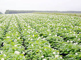 春から初秋にかけて降り注ぐ太陽を いっぱいに受けて育ったジャガイモは 一面の花畑となり 地中に実を結んでいくのだ 変わることのないこの風景に、また出会いたいと思った もどる↑ 次へ→