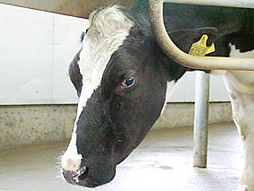 厳しい衛生管理のもと自動搾乳機によって牛乳が搾られる。作業行程で牛に手を触れることは全くない。搾乳室に入ることをいやがる牛もいたが、概ねは納得して作業に協力的だった。彼女達にとっては毎日の日課であり、極く自然な風景なのだろう。
