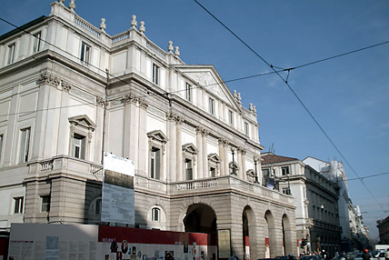 ガレリア ヴィットリオ エマヌエーレ2世(アーケード街)を通ってスカラ広場に抜ける。憧れのスカラ座が朝日に映えた。オペラ発祥の国イタリアで最も威厳に満ちたオペラハウス、スカラ座は1778年に完成した。オープニングにはイタリアの作曲家アントニオ・サリエーリ(1750-1825)が「気に入られたエウロペ」を上演。1812年にロッシーニの「試金石」を初演、マイヤベーア、ドニゼッティ、ベッリーニ、ヴェルディらの作品もスカラ座で初演されている。スカラ座は1943年には第2次世界大戦で破壊されたが1946年に細部まで全く当時のままに復元・再建された。世界一の芸術の殿堂としての歴史を感じさせる劇場に一度は足を踏み入れたいと思った。