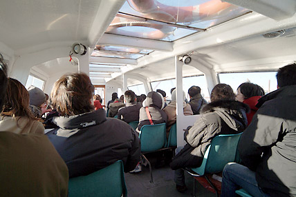 3日め朝は5時45分起床。朝食弁当はりんごとオレンジ、パンと桃ジャム、オレンジジュースと飴2つ。思わずおやつを出して食べる。イタリア北東部、ピアベ川とポー川流域に広がる干潟地帯。本土側から列車やバスで長い鉄橋を渡っていくと、海の上に直接浮かぶように、多くの家々や教会が並ぶヴェネツィアの町並みが見えてきた。いつか海へ沈みゆく儚くも美しい水の都ヴェネツィアはアドリア海の女王としての健在ぶりを見せ付けるかのように現れた。