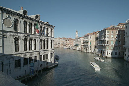 地図上で見ると、ヴェネツィアの中心地に位置しているリアルト橋。サンマルコ広場が政治と宗教の中心地であるのに対してリアルト橋一帯は経済の中心地であった。現在でも生鮮市場、魚市場、土産物店がぎっしりと軒を連ね、観光客だけでなくヴェネツィア人たちも集まる界隈だ。12世紀までは橋と言えるものではなく、船をつないだ渡り廊下のようなものが設置されていたようだ。16世紀までの間に何度か木の橋が架けられたが、崩れたり火災に遭うなどで、現在ある石の橋は16世紀末に建築家ダ・ポンテによって設計されたものだ。橋は3列に分かれ、大運河を見渡せる両側の通路と中央には店が建ち並んだ中央通路がある。
