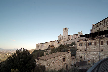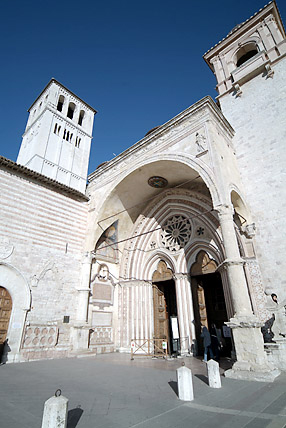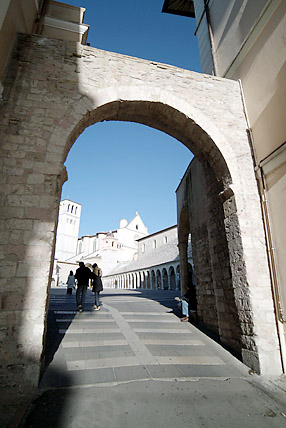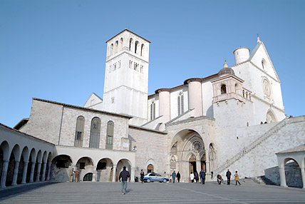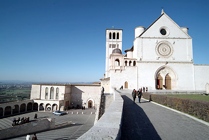 アッシジの歴史は紀元前1世紀のローマ時代にさかのぼる。その頃から変わらないといわれる現在の街の風景があった。その後は蛮族の支配、ローマ帝国の領地、自治領時代(フランチェスコが生きた時代)、教皇領といった時代を経てきた。 街の城壁最西端にそびえ建つサン・フランチェスコ寺院である。フランシスコ派カトリックの総本山で上部教会には聖ダミアーノの十字架像、世俗の完全放棄、聖痕の秘蹟、死という名の妹との出会いなどジョットによる28枚の連続フレスコ画「聖フランチェスコの生涯」が描かれている。寺院ではクリスマスミサに少しだけ与ることができ、グロリア等の聖歌に参加できたことも感激。