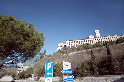 アッシジを出てバス内で一息ついた頃、太陽道路(高速道路)に入った。テヴェレ川沿いにひたすらローマを目指す3時間の道程。ウンブリア州からラッッイオ州へ移動は続く。周知のことだが欧州の水は硬水であり飲用には不適である。この石灰質の山々が水源なのだ。北イタリアでは見られなかったオリーブの木々も目につくようになってきた。「すべての道はローマに通ず」という格言を思い出した。