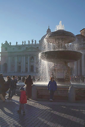 太陽道路からローマ環状線を経て、ようやく市内に入った。まず訪れたのはイタリアの首都ローマにあるキリスト教最大宗派カトリックの総本山、サンピエトロ寺院に向かう。世界最小国家バチカン市国だ。バチカン市国の面積は44ヘクタール。これとほぼ同じ面積といえば東京ディズニーランドくらいである。世界中のカトリック教徒を率いるローマ法王(教皇)は中世ヨーロッパで絶大な権力を持ってた。1929年ムッソリーニと法王の間で「ラテラノ条約」が締結されローマ法王の領土としてバチカン市国が誕生した。使徒ペテロの墓の上にうち立てられたこの宗教国家は、2000年にわたって西欧精神の中軸として絶大な影響力を保持しながら世界に君臨してきた。現在その信徒数は10億人に達している。サンピエトロ広場中央には、西暦40年にエジプトから運ばれた高さ25.5mのオベリスクがあり、周辺の円柱の上部には140人にも及ぶ聖人像がある。聖人ペテロ(サン・ピエトロ)はこのあたりで逆十字架にかけられたといわれている。多くのシスターや信徒、観光客で賑わうサンピエトロ広場を訪れた。その迫力で圧倒されながら聖堂内部に入ったのだ。