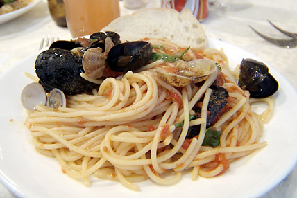 ポンペイに到着するや否や昼食だった。一番の感動は南イタリア産、搾りたてのフレッシュオレンジジュース、4ユーロだ。さっぱりした甘さは柑橘系であることを忘れさせてくれる。最後のフライは油濃さ満点である。蛇足だが地中海性の暖流によって海も海産物も磯の香は全くと言っていいほどに感じない。腹拵えの後は、いよいよ目の前のポンペイ遺跡だ。