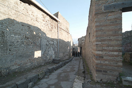 西暦79年当時の街並が驚くほど生々しく残っている。この街ポンペイは長い間人々の目の前から消え、忘れ去られていたのである。2000年前のローマ帝国華やかなりし市民生活がそのまま発掘・展示されていた。道路は石で舗装され、中央は車道(馬車道)で両サイドには一段高くなった歩道がある。鉛製の水道管が道路に埋め込まれた水道設備が完備しており、随所に噴水がある。浴場は男女別々に左右に配置され、二重構造の床で保温の配慮がされた立派な施設だ。猛犬注意の表示など現代と何ら変わらない生活ぶりが伺えた。16時30分にはバスでローマに向かった。道中に運転手が2度のアンコールに応えて歌ってくれたカンツォーネ(曲順はオーソレミオ・サンタルチア・帰れソレントへ)が忘れられない。