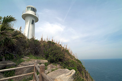 神戸からの女性3ライダーはいぶかしそうに筆者のツーリングボックスをのぞき込み「すごーい、2段積みやでー」と関西弁。確かに危なっかしい積み方である。片やD100所有の男性ライダーとデジカメ談議を交わした後に岬の灯台目指して歩き始めた。