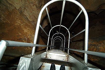 京都の鍾乳洞探検-3 ―瑞穂町・質志鍾乳洞― 外の気温は30度くらいと感じていたが 洞内は体感20度ってところ しばらく下りていくと絶叫スポット それでも真下に下りていく まだまだ下りて5分くらいで最低地点に到着 さあ地上へ ←前へ プライベートルームへ↑ 次へ→
