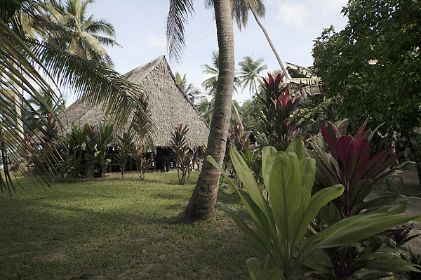 タモンのホテルエリアからわずか10分、近代化された町と背中合わせで共存する手つかずの自然がファイファイパウダーサンドビーチの魅力だ。 チャモロの建築様式で作られた建物が目を引いた。ビーチの奥には、アメリカ政府認定の文化遺産にも指定されている 手付かずのジャングルが広がっている。