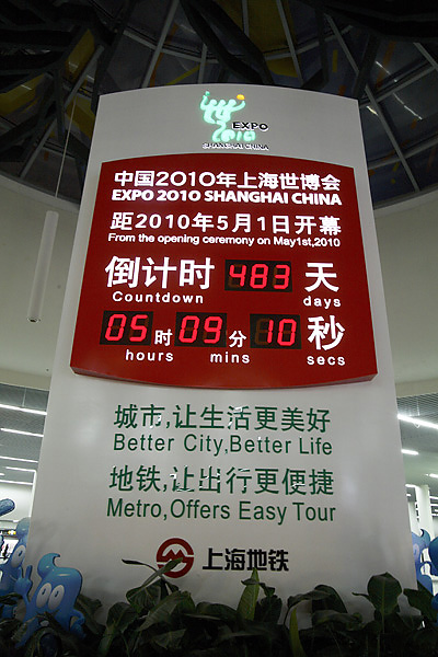 どこでも見かける万博カウントダウンの下で軽食