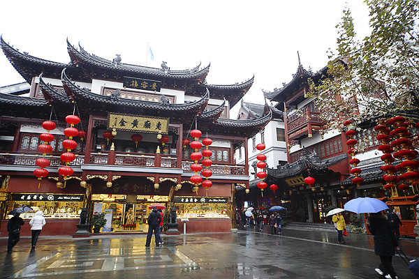最終日は朝から小雨。特に目覚ましをセットしていないにも関わらず騒々しくて眠れない。7時からホテル下の道路で大声をあげているようだ。窓から覗いてみると女性が激しい剣幕で男性をまくし立てている。静かに始まるべき連休のラッシュアワーを望んだが叶わぬまま朝食とチェックアウトを済ませて豫円商場に向かう。雨の市街地を20分の徒歩は厳しいものだった。豪華な土産物店が軒を連ねる中、露天の賑わいは雨天を忘れさせるものだ。一番の苦悩は雨ではなく、物売りが多い事。すれ違う人すべてが偽ブランド品売りに見えるくらいだ。昼食は上海蟹(ここでは一皿30元)と思ったが、良からぬ噂(ホルモン投与による脱皮促進処理で早期出荷)を耳に断念する。