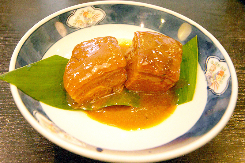 ホテルの食事もいいが、石垣島の市街地にある郷土料理店“磯”さんを訪ねてみることにした。定食とラフテーをたのむ。定食はジューシー・もずく・アーサー汁など。ラフテーとは沖縄県の郷土料理。 皮付きの三枚肉かひさがー(皮付きのもも肉)を泡盛や醤油で甘辛く味付けした料理だ。黒糖を使うこともあるそうで、大変やわらかく美味しい。