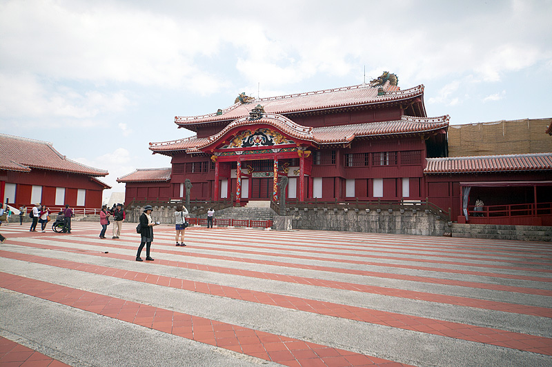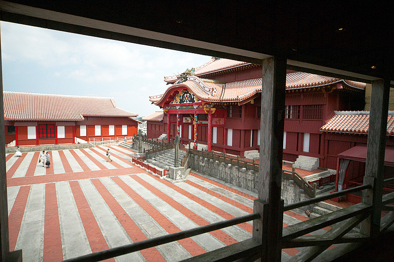 守礼門は残念ながら修復中だったが、首里城公園の世界遺産は他にある。そう、その一つが園比屋武御嶽石門(そのひゃんうたきいしもん)だ。いくつもの門をくぐりいよいよ正殿だ。戦いを好まない琉球島人の歴史を偲ぶことのできる空間だ。