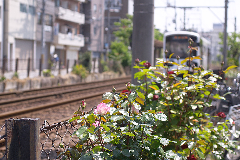 しかし、ふと軌道横を見ると鮮やかな花の競演だった。冬から目ざめたばかりの街角に5月の日差しは眩しすぎる。気品あるバラをはじめとする花々が我が物顔で咲き誇っている。不思議なコントラストを醸し出す街の風景に、シャッターチャンスを探しながら時間を忘れて散策した。