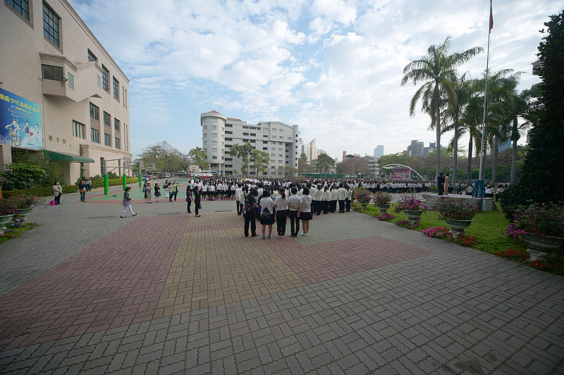 高雄市立女子高級中学は台湾でもトップクラスの進学校であり、規律正しい朝礼に感心させられた。それでいて芸術教育にも力が入っている。芸術大楼なる専用棟の8階にある400名程度収容のホールがジョイントコンサートの会場だ。