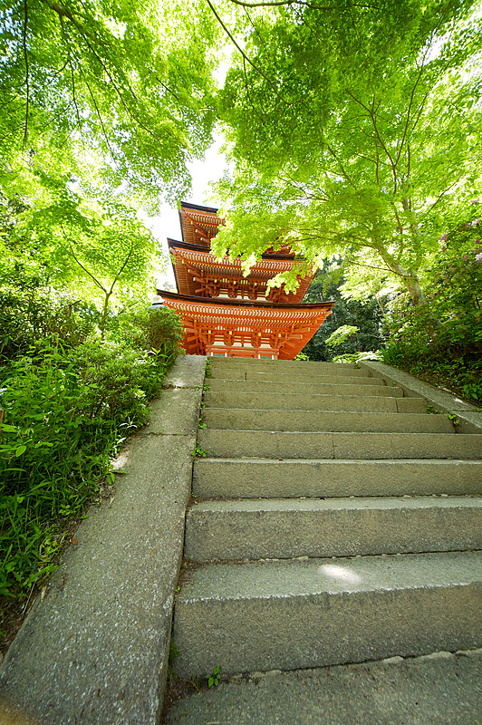 奈良の都にほど近い聖域、仏たちの浄土を祈る地である。 浄瑠璃寺にある三重塔は一条大宮から移築されたもので、京都府に残る平安時代唯一の遺構。三重塔内には重文薬師如来座像が安置されている。