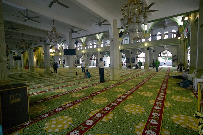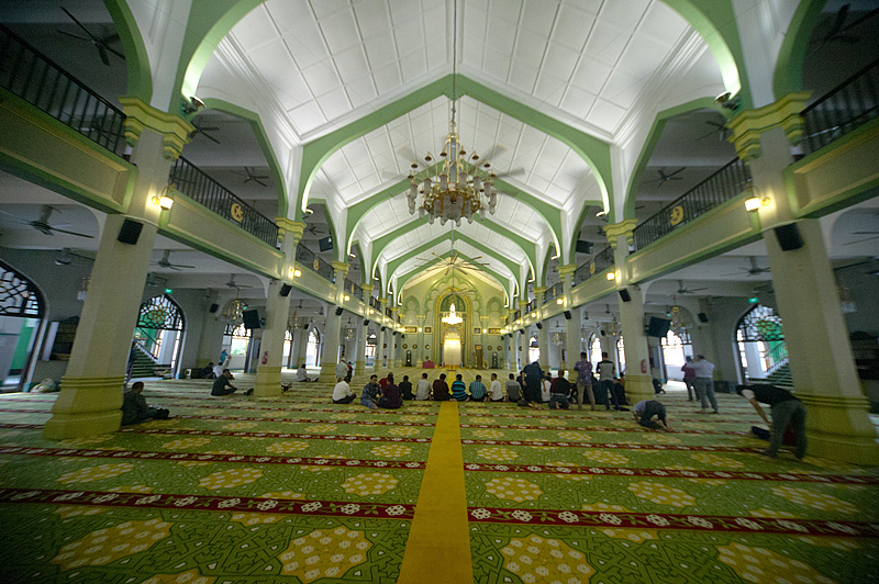 アラブ・ストリートのランドマークは何と言ってもサルタン・モスクだ。1824年に建築されたといわれているこのモスクでは、お祈りの時間以外の時間帯は観光客も自由に見学できる。中に入る際には肌の露出が目立つ人は、ガウンを借りる。モスク内部は神聖な雰囲気に満ちていた。