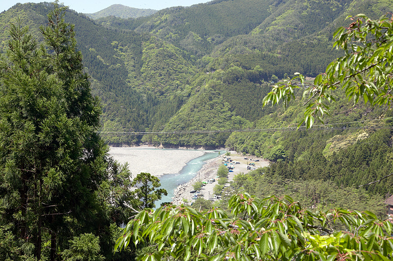 熊野本宮大社を発って帰路につく。R168を北上、十津川村を縦断する。天川村には川沿いにキャンプ場が連なっている。条例により河川敷でのキャンプは禁止だ。本当に美しい川を守るためにはマナー向上が不可欠なのだが、条例に守られないと現況を保てない人と自然の哀れさが感じられる。 道の駅「十津川」 物産は山里ならでは 十津川村の一番人気スポット「谷瀬の吊り橋」 つり橋の里キャンプ場 天の川青少年旅行村 洞川キャンプ場 ←前へ ↑もどる 次へ→